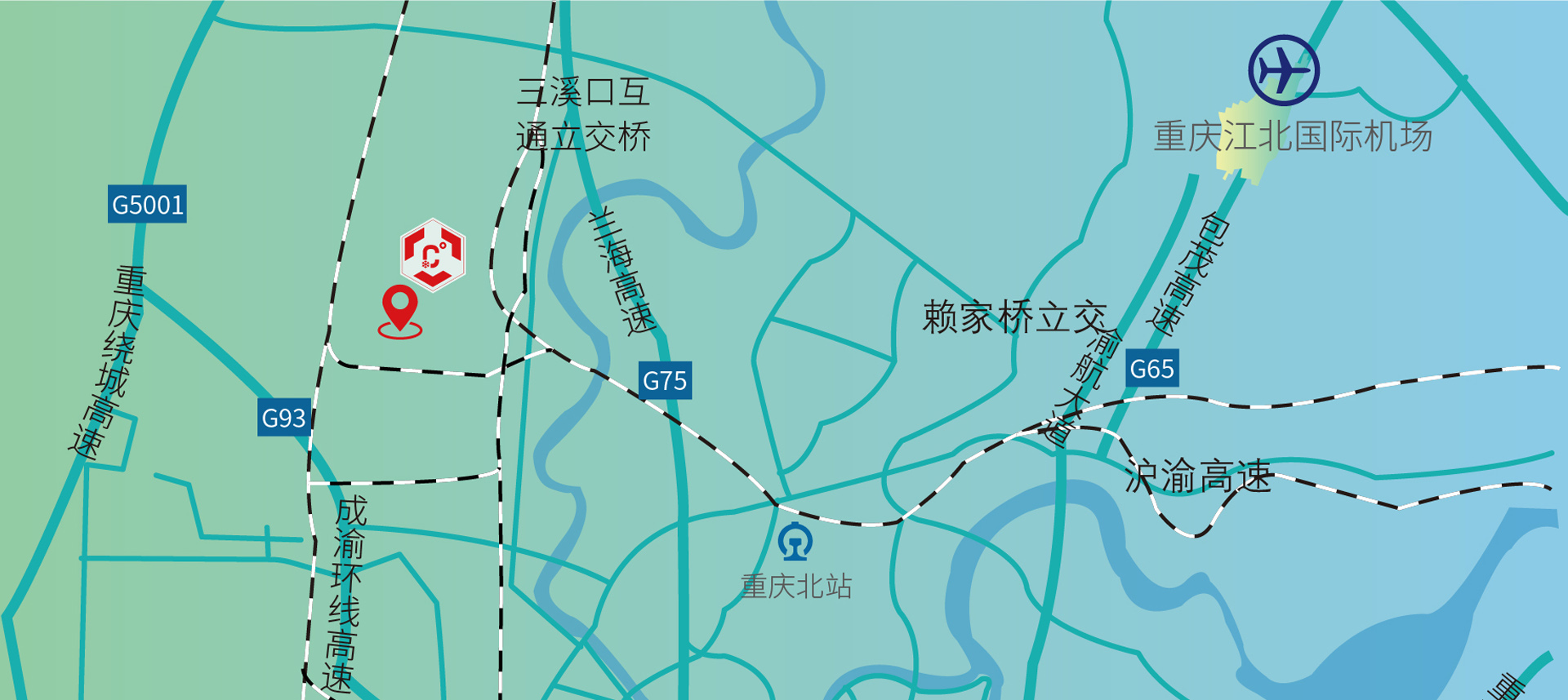 交通優(yōu)勢——距成渝高速3KM,至團(tuán)結(jié)村鐵路集裝箱站2KM,距重慶市區(qū)15KM,處于交通樞紐位置便于周轉(zhuǎn)配送